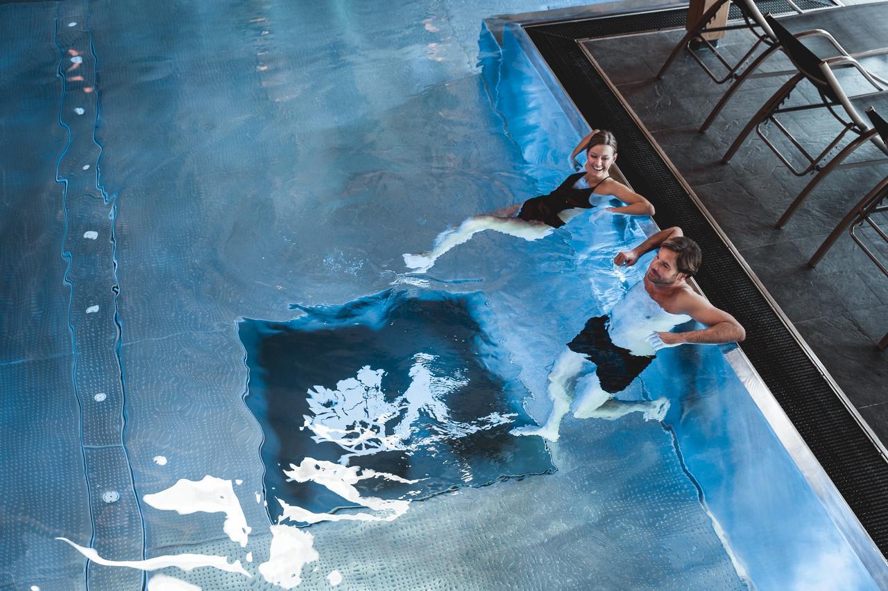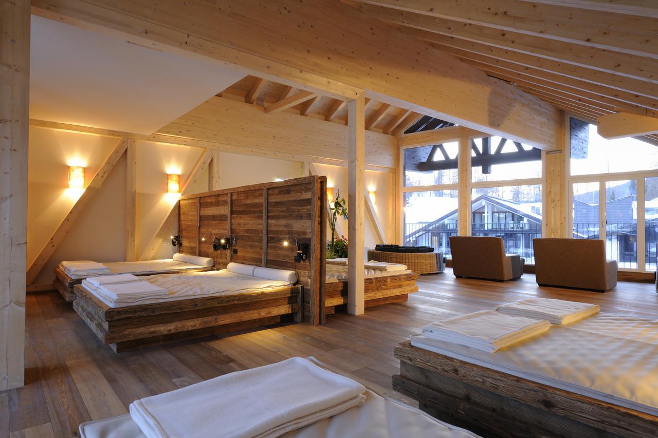 L'area benessere è molto ampia sono circa 2.500 mq. e si sviluppa su 4 piani e comprende piscina panoramica sui monti circostanti, un bagno turco, cabina a infrarossi, sauna per donne e una vasta scelta di massaggi e il solarium (entrambi a pagamento). La zona relax, composta da lettini ad acqua, mentre nella Leisure Lounge e area relax troverete sdraio in legno di cembro e la piscina calda a 36 °C con lettini subacquei per i massaggi. Inoltre durante la giornate sono disponibili nell’area benessere succhi di frutta, tè e frutta.