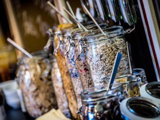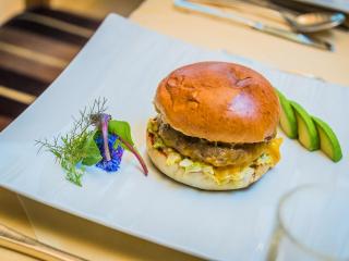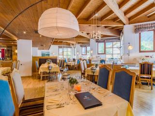 Ampia sala per la colazione a buffet e per la cena, Il ristorante offre piatti locali e internazionali, preparati con ingredienti biologici di provenienza locale (anche per celiaci), accompagnati da una vasta selezione di vini di qualità.