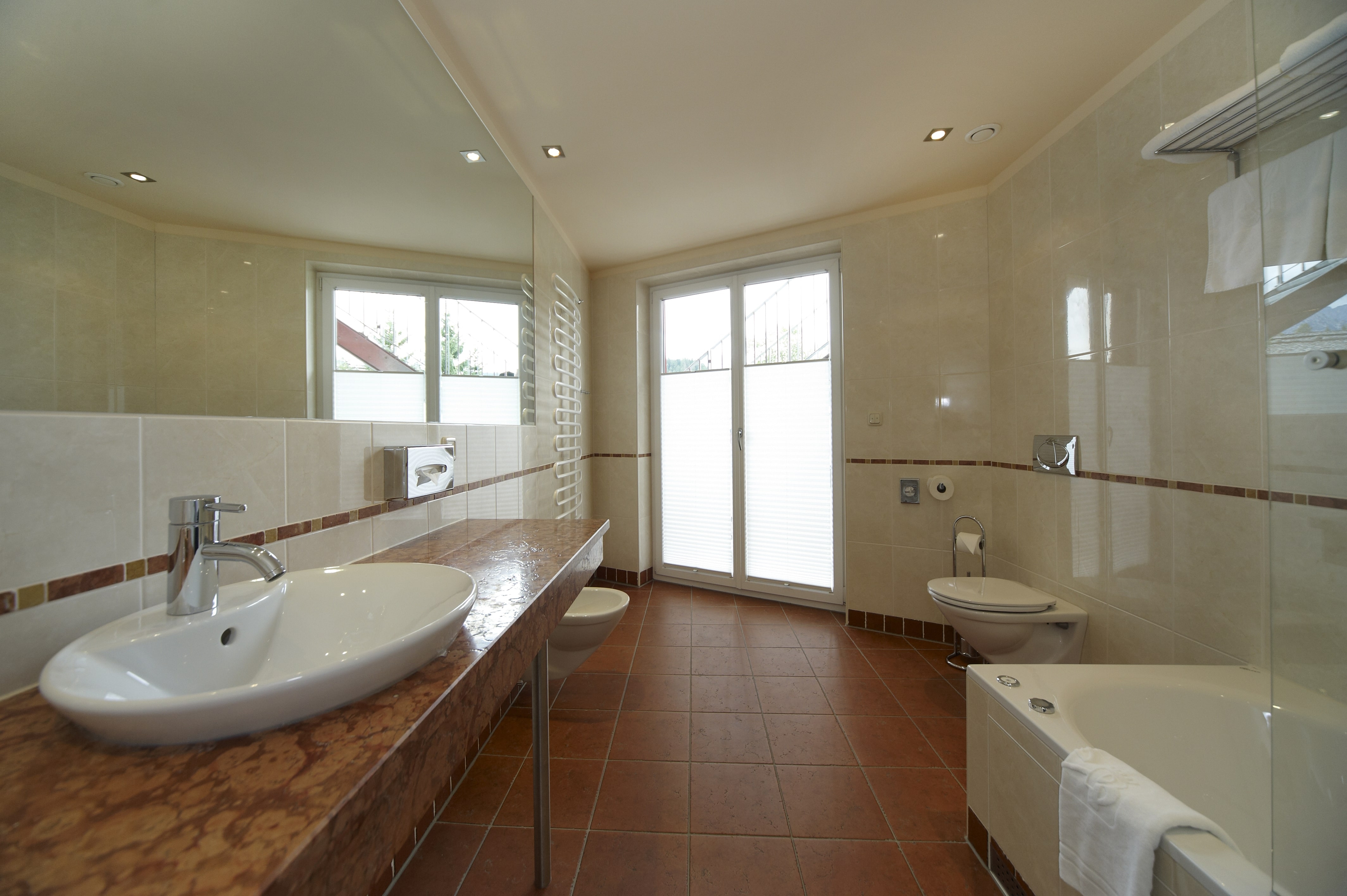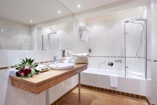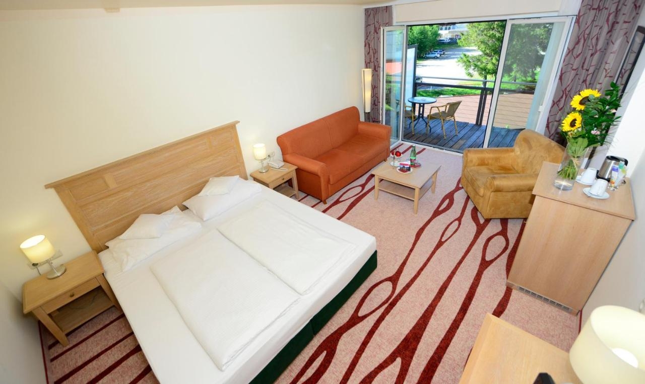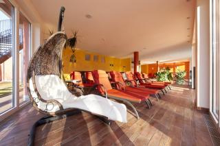 La sua elegante e spaziosa area benessere, è composta da una piscina riscaldata esterna con vista sulle montagne circostanti e una piscina interna, sauna, bagno turco, idromassaggio, area relax, area fitness, solarium a pagamento. A pagamento una vasta gamma di massaggi ed estetica.
